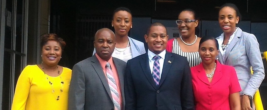 Home | Newly appointed Minister of State Floyd Green poses with Permanent Secretary Dermon Spence and Members of Staff