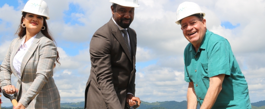 Industry, Commerce, Agriculture and Fisheries Minister, Hon. Audley Shaw (right), participates in the ground-breaking of Virtudes Hemp Farm along with Chief Executive Officer and Co-Founder of Virtudes Company Limited, Jamiel Jamieson (centre) and Chief Operating Officer and Co-Founder, Farrah Zaragan in Lennox Bigwoods, Westmoreland, on November 21.