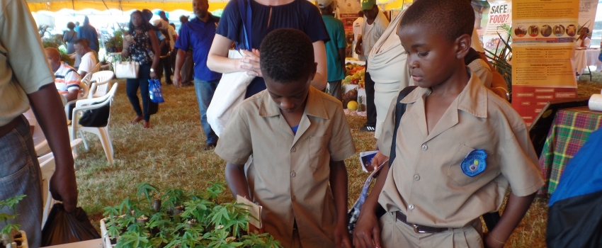 Students view cassava seedlings on display at the Rural Agricultural Development Authority-organised St Bess Agri-Fest/SDC Business Fair held in Santa Cruz, St. Elizabeth, on May 31.