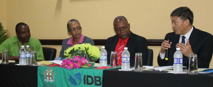 Ning Wang, Director of Food Safety Division 4, Import and Export Food Safety Bureau, Administration of Quality Supervision, Inspection and Quarantine in China, speaking at a meeting with Dr. Osbil Watson, Chief Veterinary Officer, Avery Smikle, Acting Director of Fisheries, both from the Ministry of Industry, Commerce, Agriculture and Fisheries; and Esmond Reid, Acting Undersecretary at the Ministry of Foreign Affairs and Foreign Trade on February 26. Mr Wang along with a team from China will be auditing Jamaica’s spiny lobster operations to include its monitoring progamme, processing, packaging and loading. In addition, they will examine the capacity of the Veterinary Services Division laboratories.